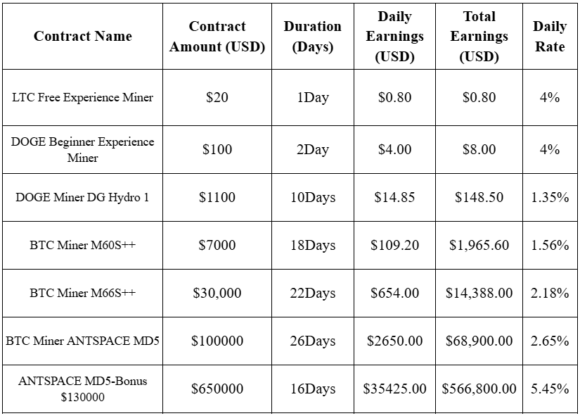 For many, taking that very first step would be the most difficult part of the entire process. One is able to enter the space without any huge difficulties owing to AIXA Miner, which provides different formats of contracts isolating specific minimum sums of money. The LTC Free Experience Miner and DOGE Beginner Experience Miner permit the newcomers to start as low as $20 or $100 dollars of capital.