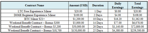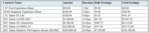 If users are smart about reinvesting they can start little, theoretically only with $100, and turn that money into contracts that give them daily payouts of more than $400 within two months. It is through the model of reinvestment that one can reach from one to five figure moneys monthly.